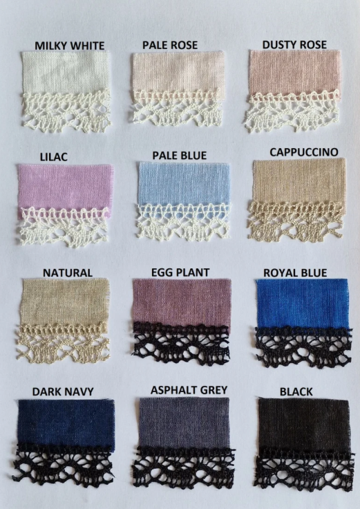 - Ruffles with fine elastic and delicate linen lace at the bottom
