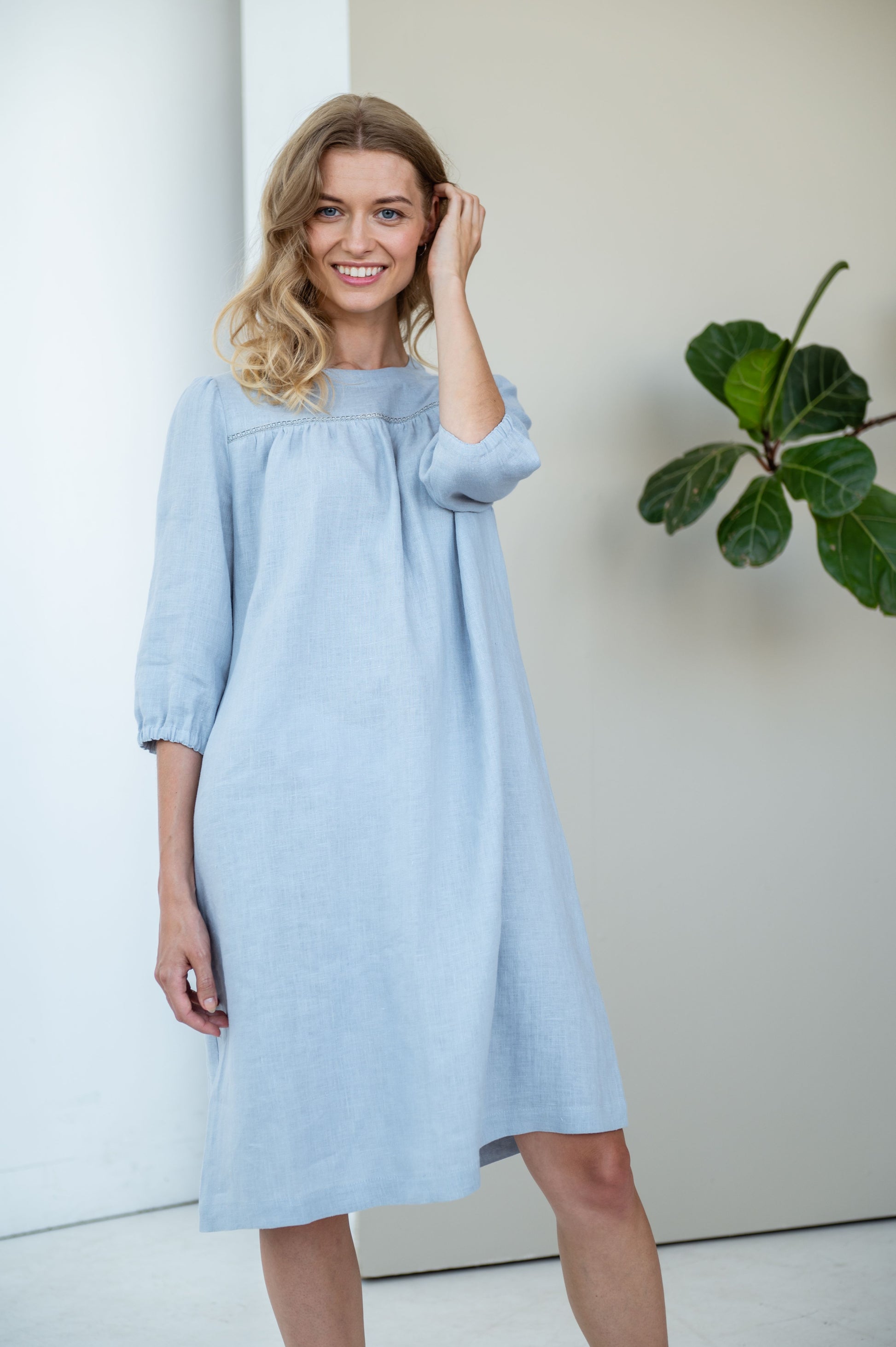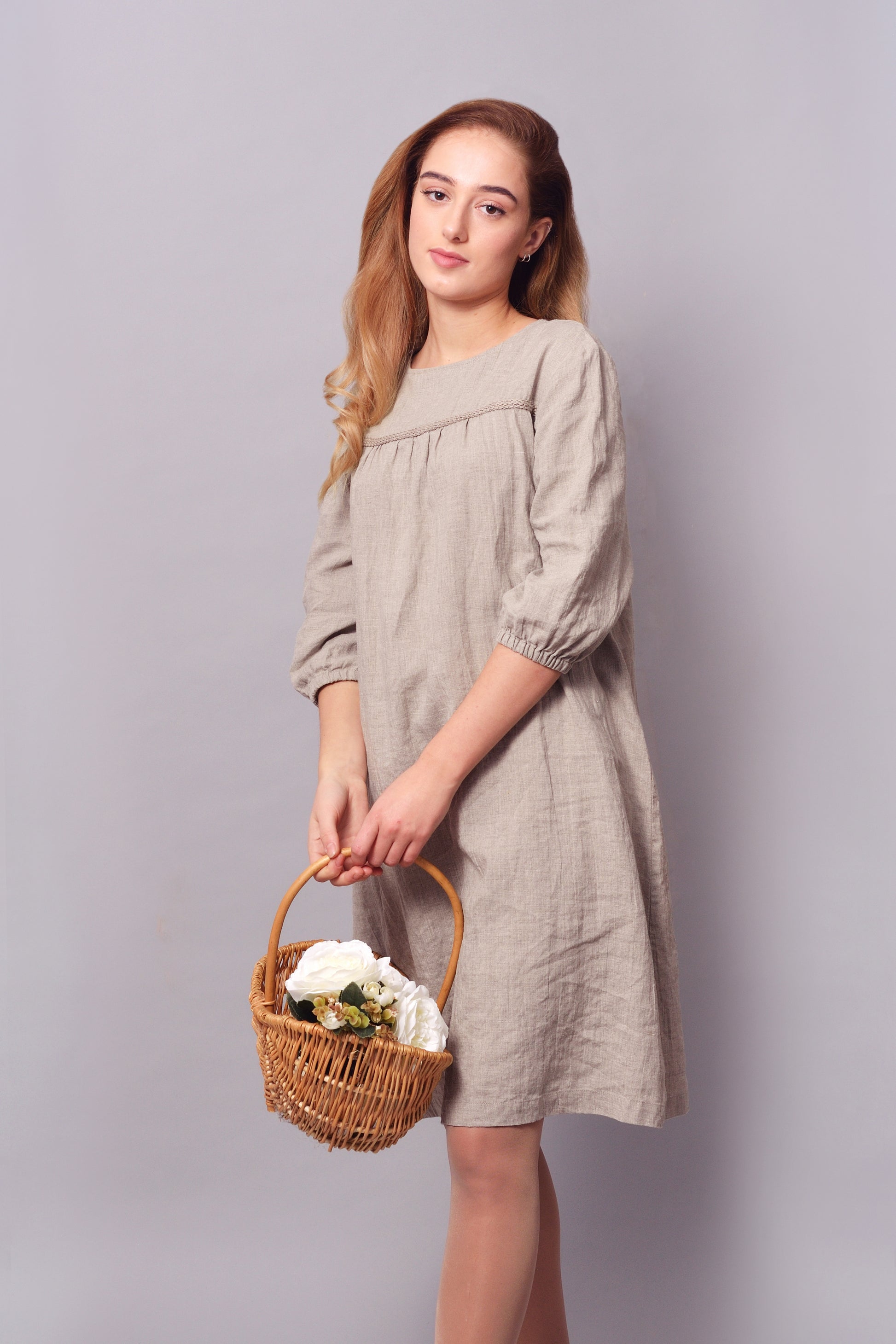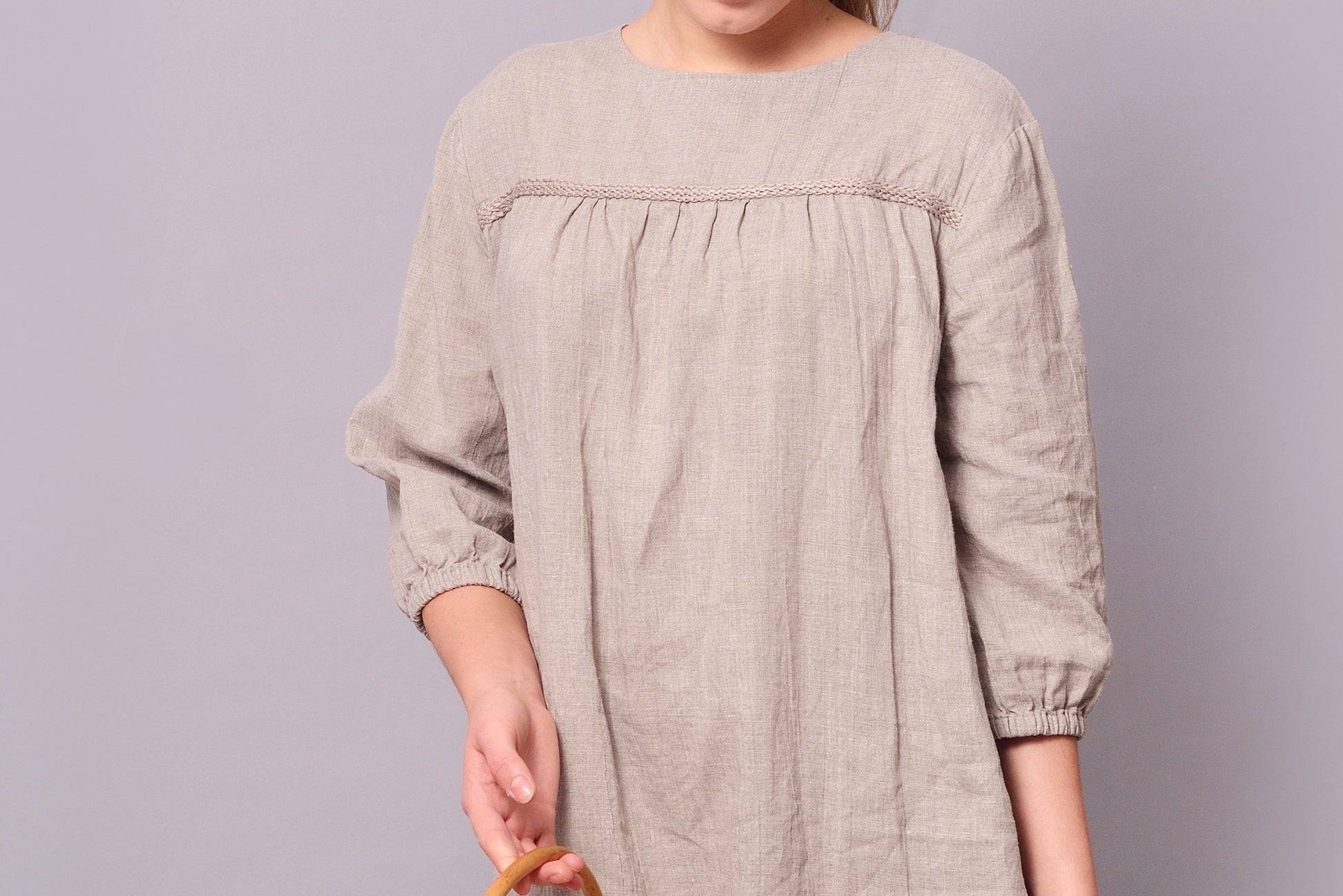 Linen  dress - tunic Virginia with decorative tape and 3/4 length sleeves - the right choice for your daily wear, shopping time, street wear and office too.