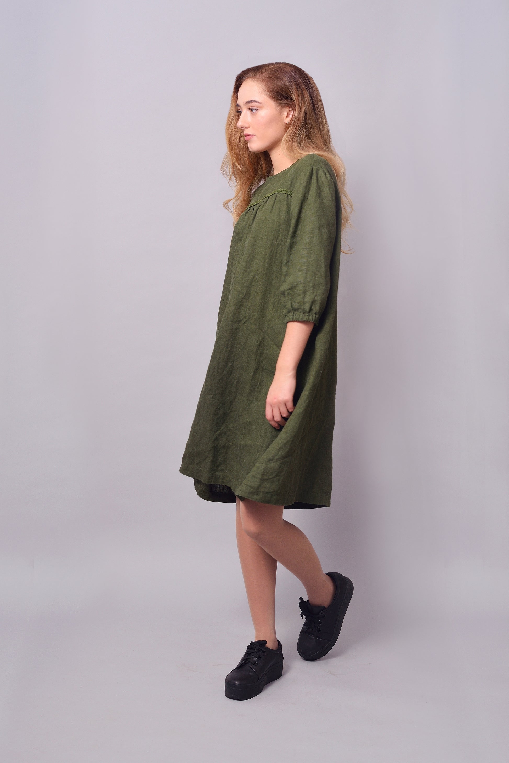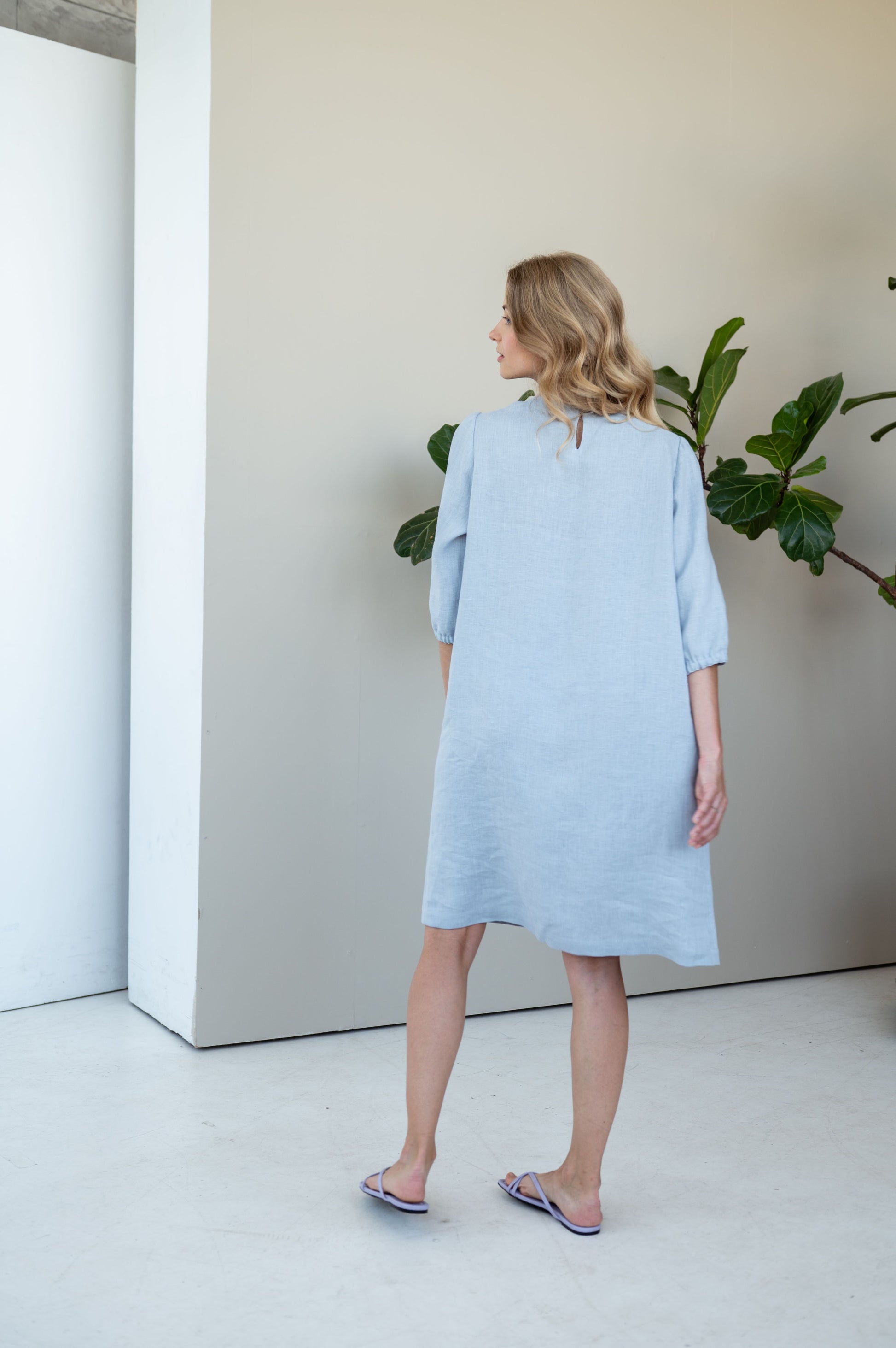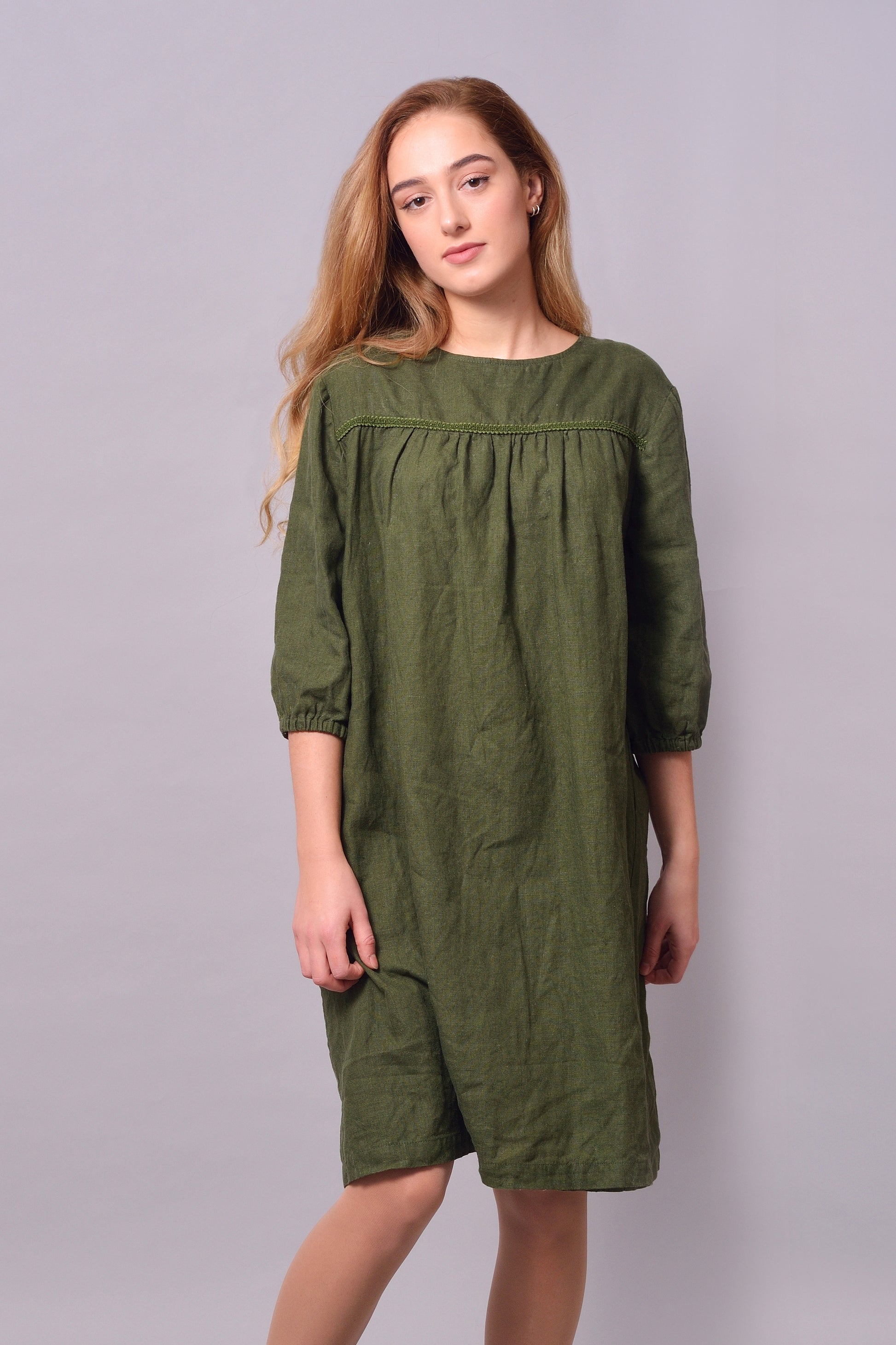 Linen  dress - tunic Virginia with decorative tape and 3/4 length sleeves - the right choice for your daily wear, shopping time, street wear and office too.