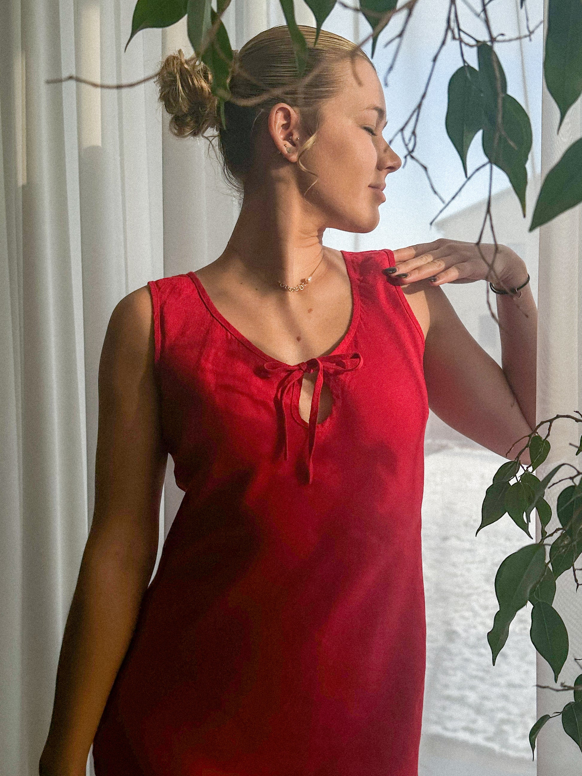 Linen Long Night Gown DEW in Rose