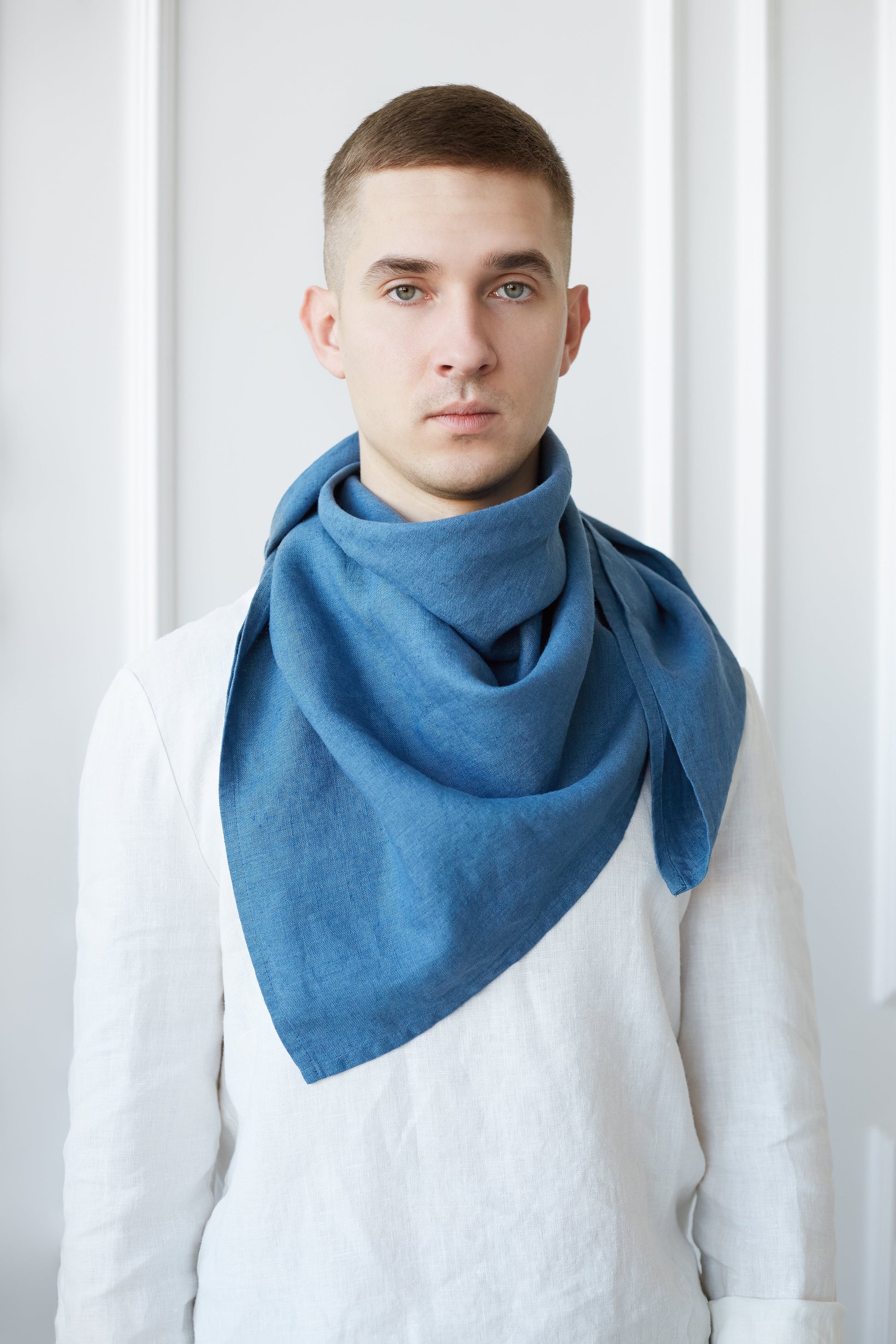 Linen Scarf For Men in Denim Blue