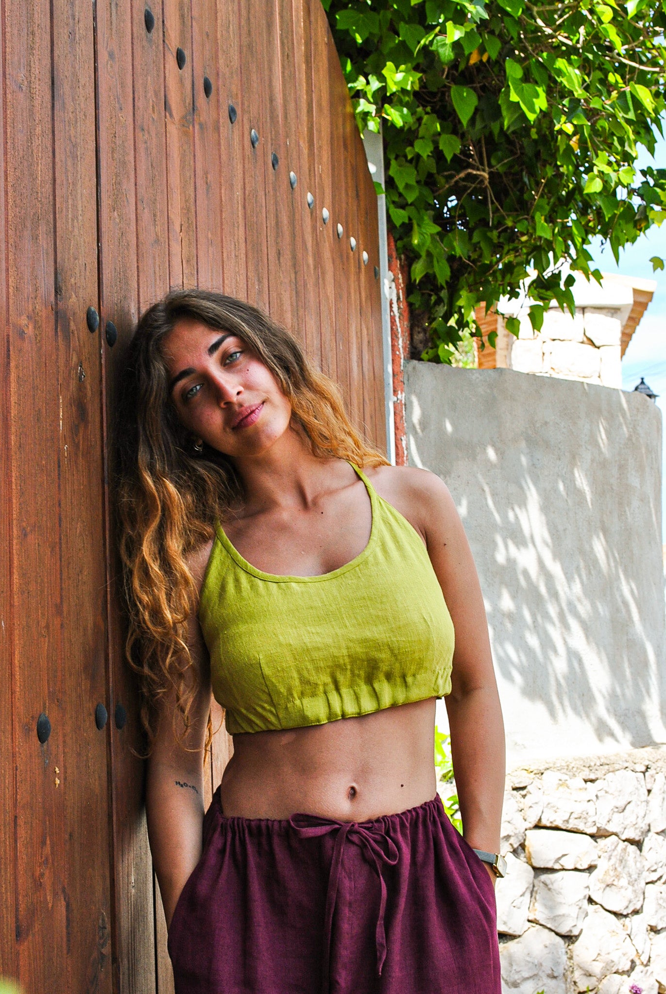 Stay stylish and cool in this beautiful linen crop top, designed for hot summer days, holidays, and effortless everyday wear. With its feminine silhouette and on-trend design, this piece is a must-have for the season.