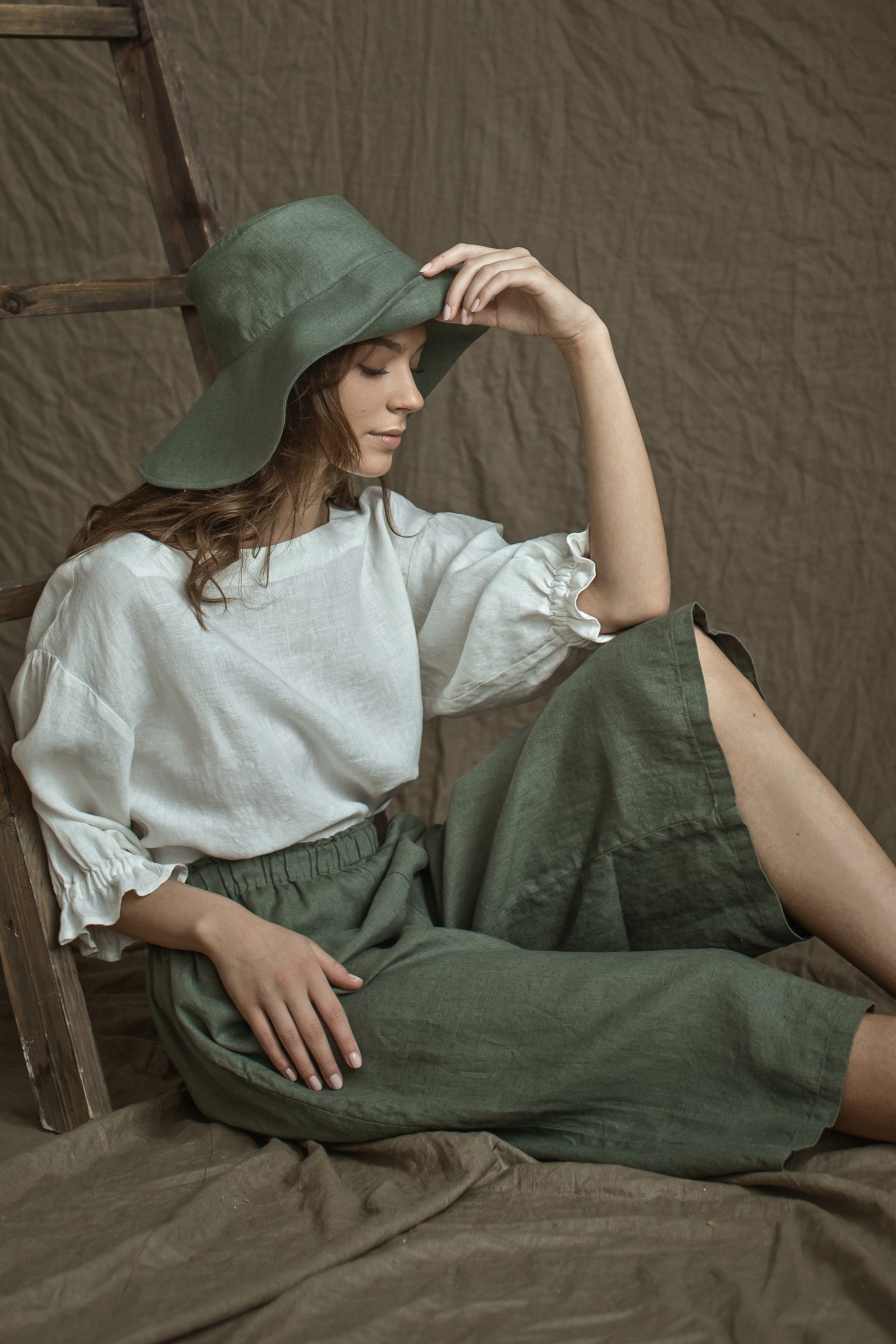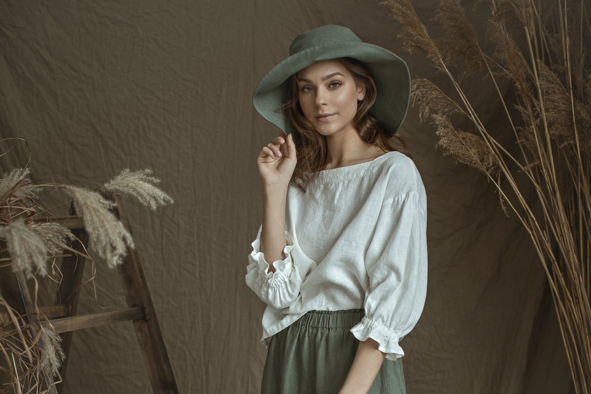 Soft with wide brims summer hat made in flax-linen. It will protect you in hot summer day of sun or rain.